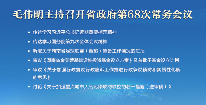 • 毛偉明主持省政府第68次常務會議 研究設立金芙蓉基礎設施投資基金、大氣污染聯(lián)防聯(lián)...